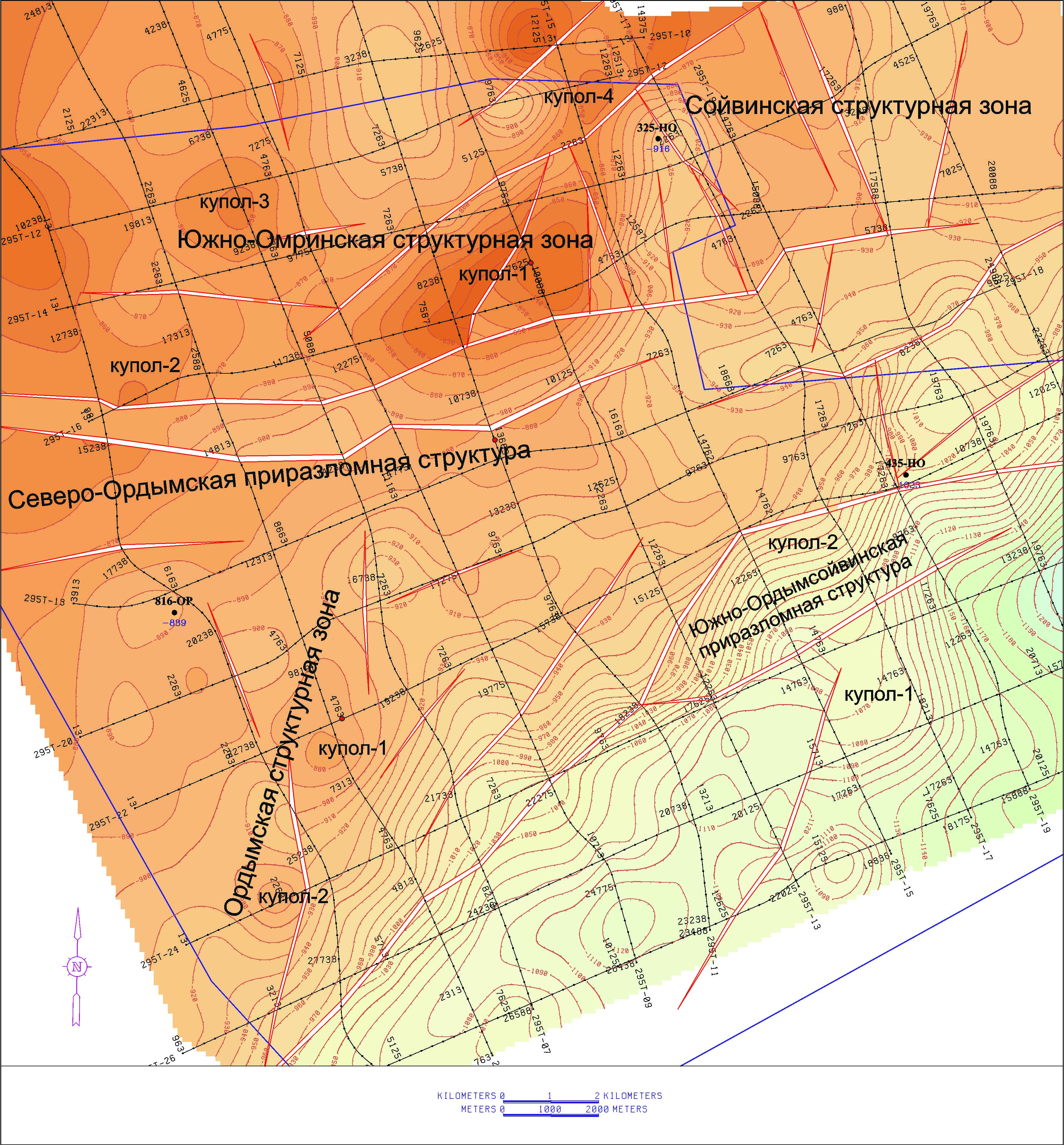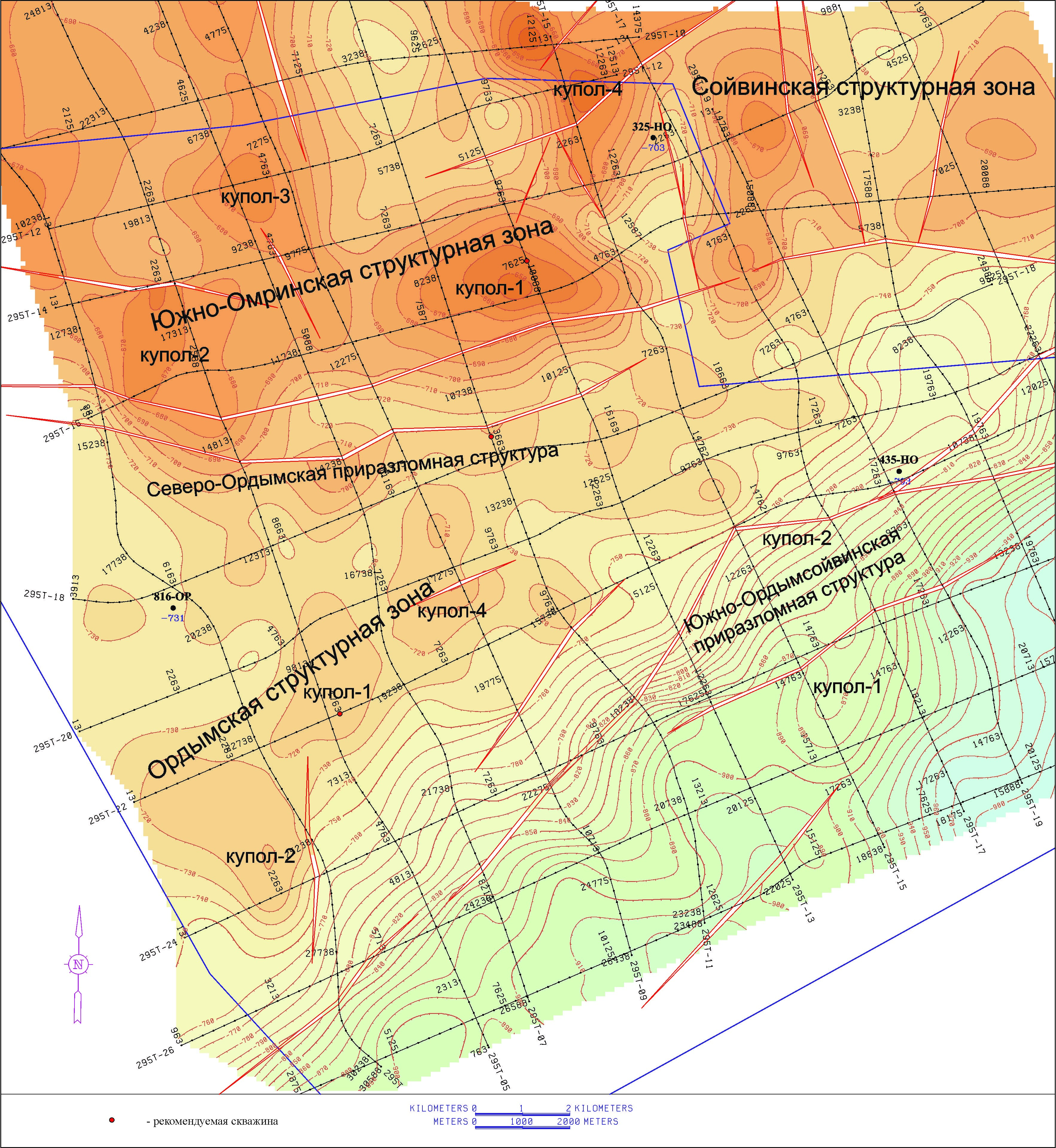 Выделяющиеся по всем изученным ОГ мелкие куполы и малоамплитудные структуры условно объединены в структурные зоны, названные Южно-Омринской, Ордымской, Сойвинской.
