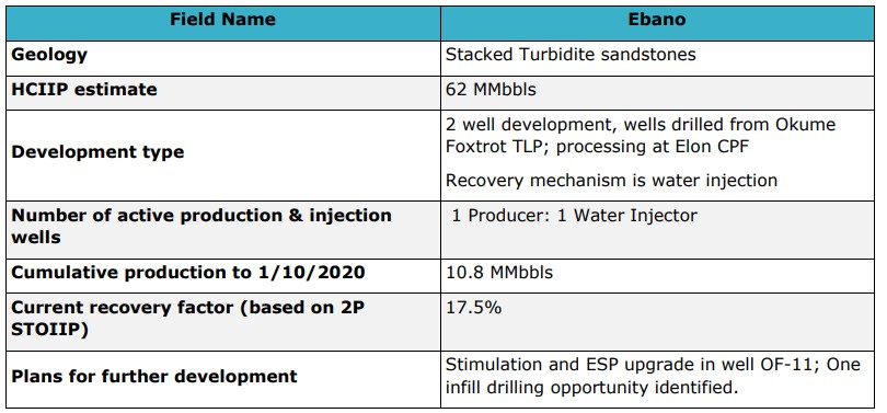 Data source:Competent Person’s Report (CPR) Tullow Oil Equatorial Guinea Assets. TRACS. 2020