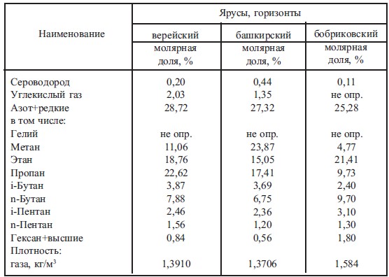 Табл.3. Характеристика попутных газов продуктивных отложений Егоркинского месторождения (однократное разгазирование; мольное содержание, %)