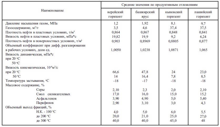 По результатам исследований пластовых и поверхностных проб нефти месторождения можно отнести к тяжелым, сернистым, парафинистым, маловязким – в отложениях девона и высоковязким – в отложениях карбона (табл. 2).