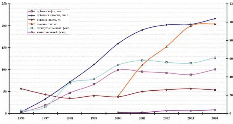 Рис.2. Елгинское месторождение. Динамика показателей разработки