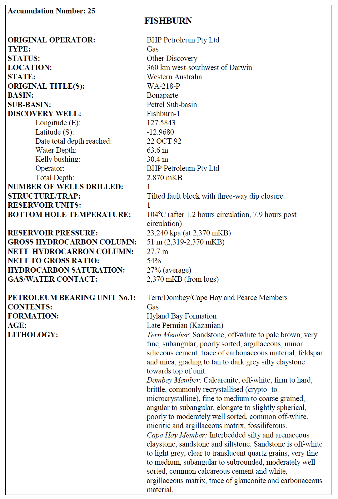Data source: Cadman, S.J. and Temple, P.R., 2004. Bonaparte Basin, NT, WA, AC & JPDA, Australian Petroleum Accumulations Report 5, 2nd Edition, Geoscience Australia, Canberra.