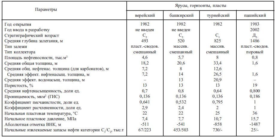 Месторождение открыто в 1982 году, введено в разработку в 1998 году. В тектоническом отношении месторождение приурочено к юго-западному склону ЮжноТатарского свода. В региональном плане оно контролируется небольшими по площади тремя локальными брахиантиклинальными поднятиями: Вязовским, Юлтимировским и Петропавловским. Промышленная нефтеносность на месторождении связана с карбонатными отложениями верейского горизонта, башкирского, турнейского ярусов и терригенными отложениями пашийского горизонта. Выявлено и введено в разработку 6 залежей нефти, контролируемых тремя поднятиями. Все отложения характеризуются неоднородностью по площади и разрезу (табл.1). Отложения верейского горизонта представлены переслаиванием терригенных и карбонатных пород. Эффективная нефтенасыщенная толщина в среднем составляет 5,4 м (рис. 1). Тип залежей пластово-сводовый и литологически экранированный.