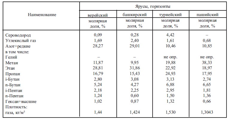 Табл.3. Характеристика попутных газов продуктивных отложений Глазовского месторождения (однократное разгазирование; мольное содержание, %)
