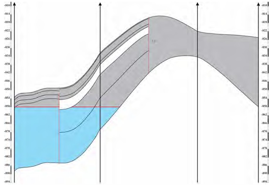 Эффективная нефтенасыщенная толщина составляет в среднем 6,2 м. Режим залежей упруго-водонапорный. В отложениях турнейского яруса залежи контролируются Вязовским и Юлтимировским поднятиями. Обе залежи относятся к массивно-слоистому типу (рис. 1).