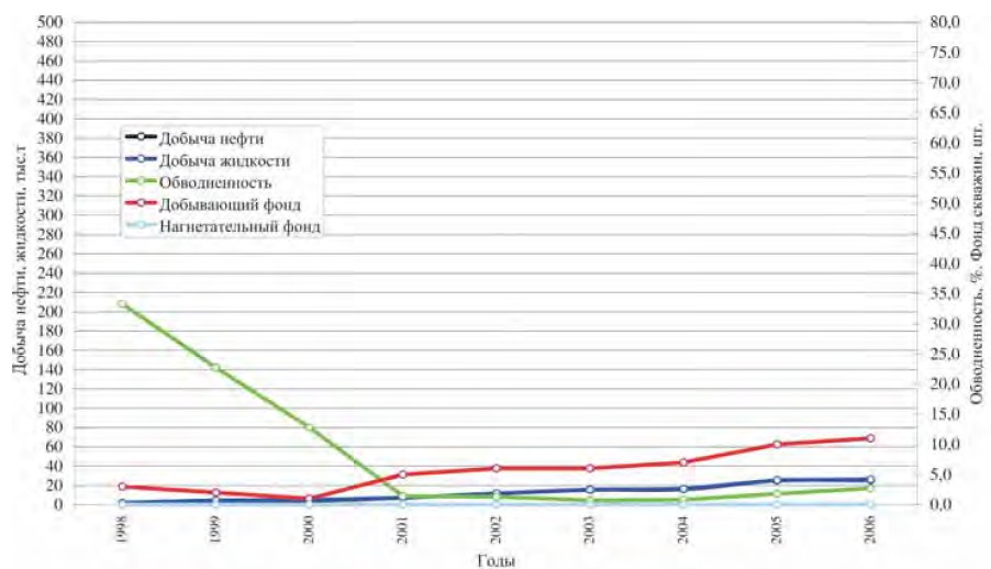 Рис.2. Глазовское месторождение. Динамика показателей разработки