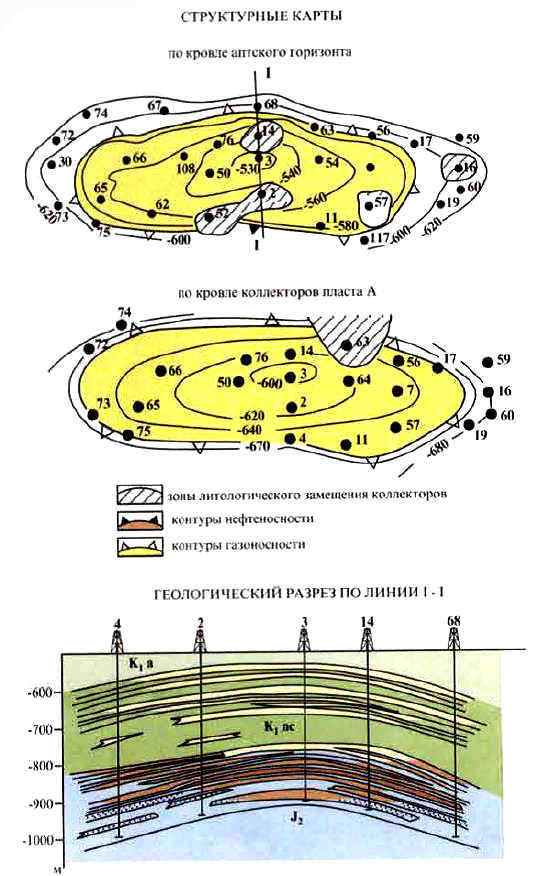 Рис.1. Газонефтяное месторождение Каламкас (по Т.И. Бадоеву, 1979 г.)