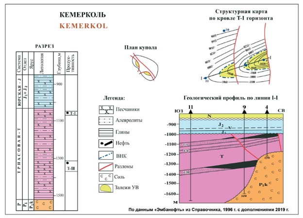 Нефтяное месторождение Кемерколь находится на северо-востоке ЮжноЭмбинской НГО. В структурном отношении месторождение приурочено к трехкрылому соляному куполу северо-западного простирания. На северо-западном и юго-западном крыльях купола в отложениях триаса выявлены два нефтяных горизонта.