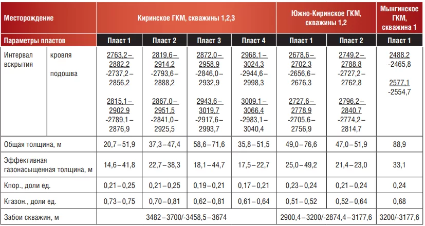 Сравнительная характеристика продуктивных пластов ГКМ Киринского блока (по ГИС):