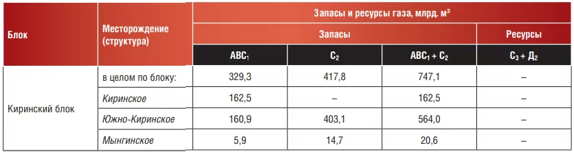Ресурсная база Киринского блока:
