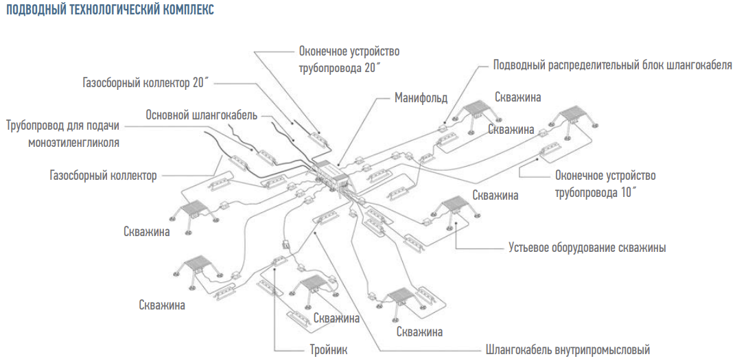 Впервые в России ПАО «Газпром» реализован проект по освоению Киринского газоконденсатного месторождения (ГКМ) с подводным расположением скважин, подводной системой сбора и транспортировкой продукции на расстояние свыше 40км до берегового технологического комплекса. По своему расположению Киринское ГКМ уникально для отечественной практики морской газодобычи. На сегодняшний день это единственный проект на российском континентальном шельфе, а также в мировой практике, где освоение месторождений углеводородов ведется с применением оборудования подводного добычного комплекса (ПДК) в ледовых условиях. Все оборудование расположено в акватории Охотского моря на глубине около 90м (рис. 2).