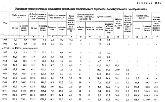 Технологические показатели разработки одного из основных объектов приведены в табл. П.06.