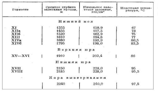 Таблица 1 – Характеристика продуктивных горизонтов Гугуртлинского месторождения