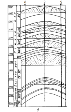 Рисунок 2 – Геологический разрез месторождения Гугуртли (по данным треста «Туркменнефтеразведка»)