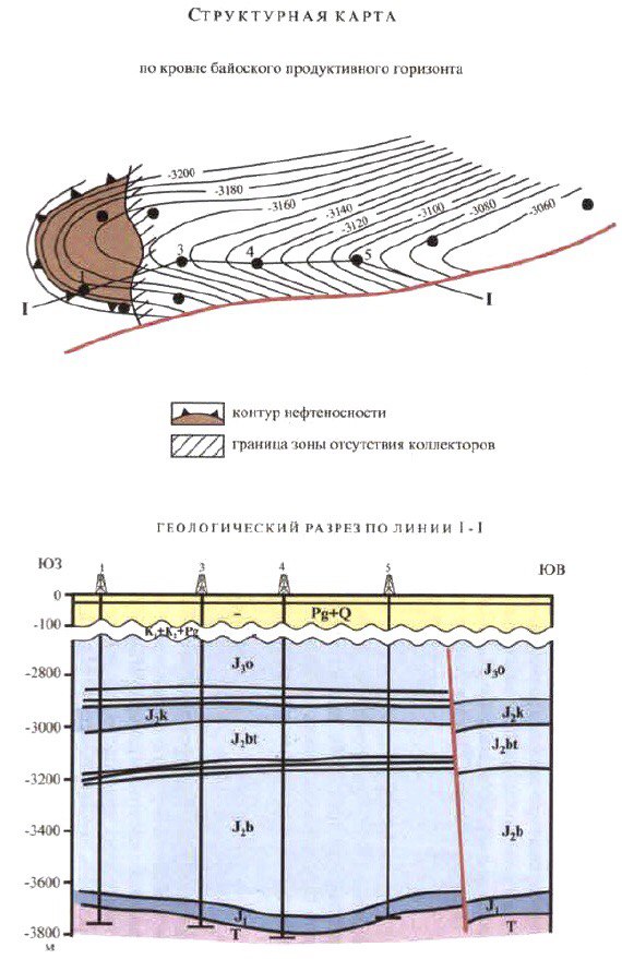 Открыто в 1978 г. Приурочено к слабонарушенной антиклинальной складке. Доказана нефтеносность верхней и средней юры (рис.1). Залежи пластовые с элементами литологического экранирования. Пористость песчаников 18%, проницаемость до 40 Мд. Плотность нефти 832 кг/м3.