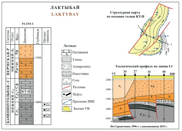 Нефтяное месторождение Лактыбай расположено на востоке Восточно-Прикаспийской НГО, юго-западнее месторождения Жанажол. Впервые для этого региона под краевой частью нижней карбонатной толщи KT-II, в терригенном комплексе нижнего визе, разбитом на ряд блоков, выявлены три нефтяных горизонта (C1-I, C1-II и C1-III).