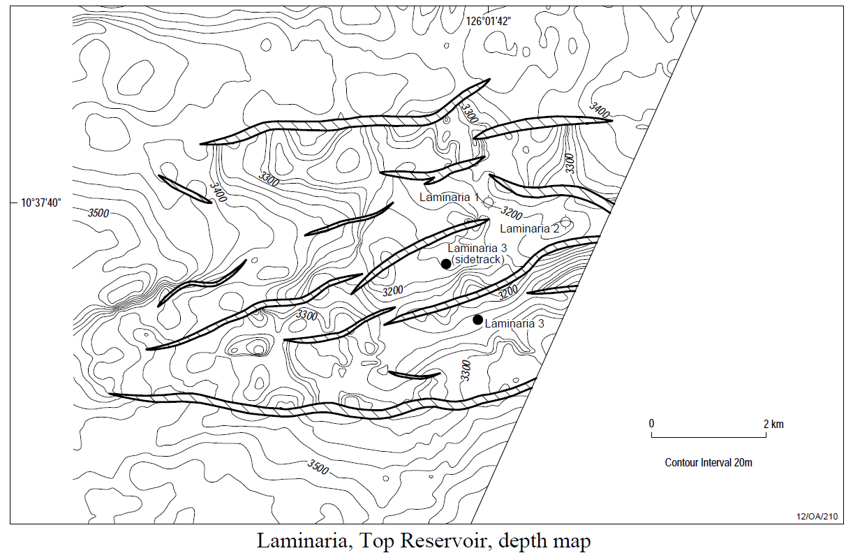 In October 1994, Laminaria-1 was drilled in exploration permit AC/P8 (subsequently converted to production license AC/L5) to test a tilted block on the Laminaria High.