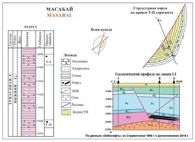 Нефтяное месторождение Масабай находится в центральной части Южно-Эмбинской НГО. В структурном отношении месторождение приурочено к двухкрылому соляному куполу, расположенному юго-западнее месторождения Косшагыл. На восточном крыле купола в отложениях триаса разведаны 2 тектонически экранированные нефтяные горизонты.