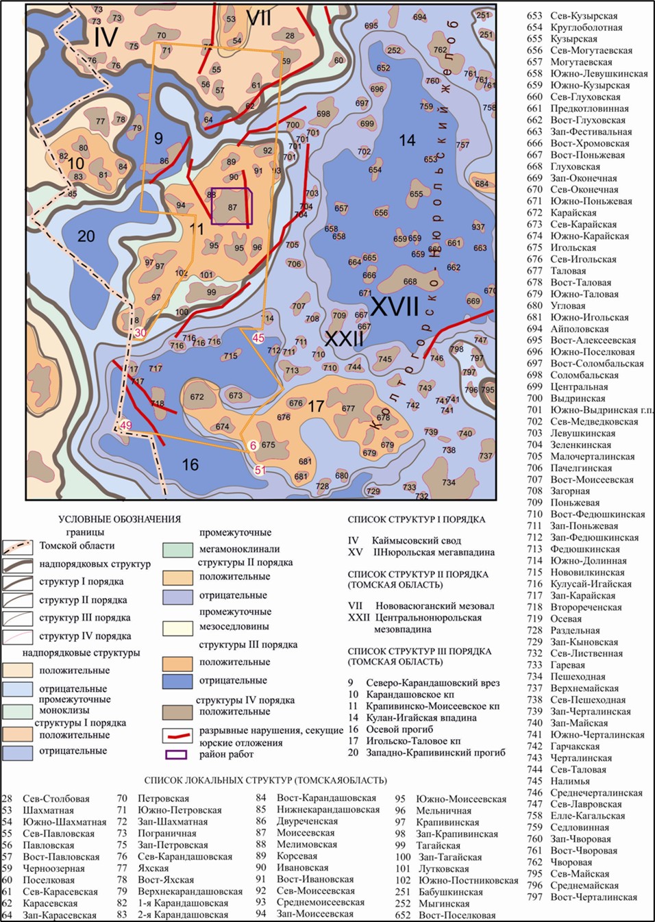 Рис. 3. Фрагмент тектонической карты юрского структурного яруса осадочного чехла западных районов Томской области (Конторович В.А., 2004 г.)