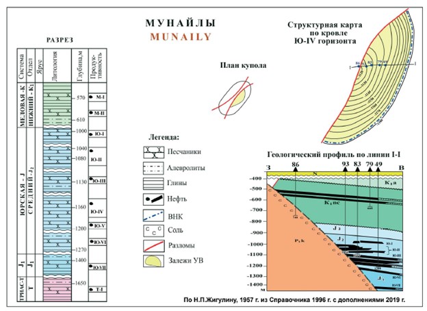 Нефтяное месторождение Мунайлы находится в центральной зоне Южно-Эмбинской НГО. В структурном отношении месторождение приурочено к двухкрылому соляному куполу, на юго-восточном крыле которого в отложениях триаса, юры и мела разведаны залежи нефти, экранированные соляным ядром.