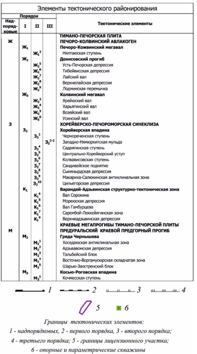 В соответствии со схемой тектонического районирования осадочного чехла Тимано-Печорской нефтегазоносной провинции (ТПП), участок недр находится в пределах юго-западной части Хорейверской впадины. В нефтегазогеологическом отношении ЛУ расположен в пределах Колвависовского НГР, входящего в состав Хорейверской НГО Тимано-Печорской провинции.