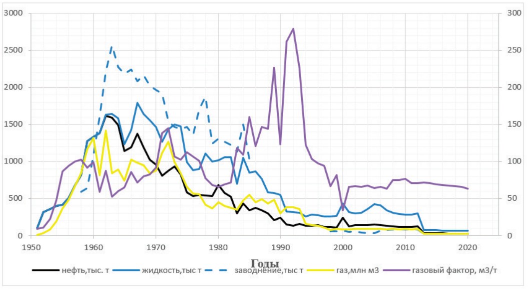 На рисунке 1 представлена динамика технологических показателей разработки по IV блоку.