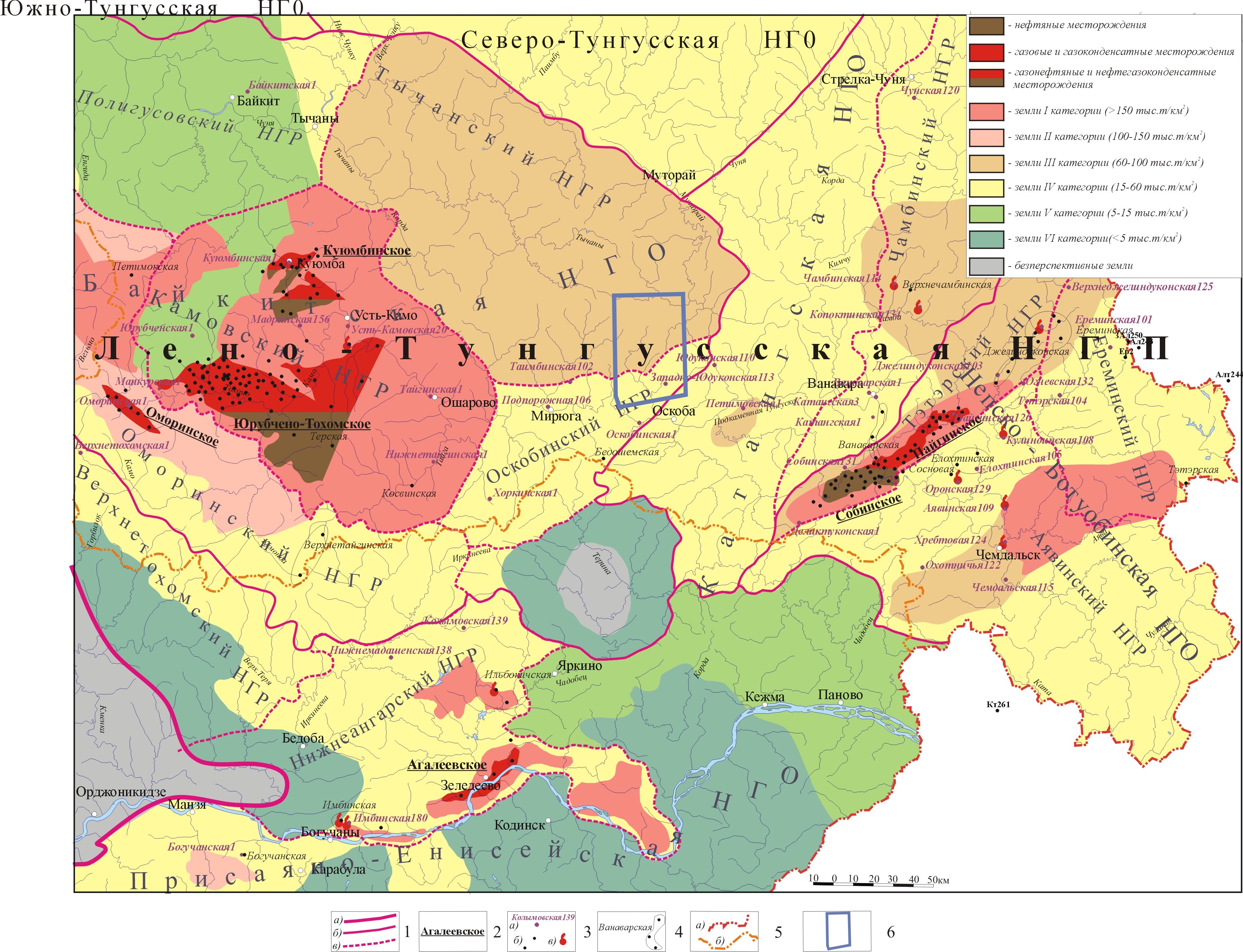 Рис.5. Карта перспектив нефтегазоносности Красноярского края