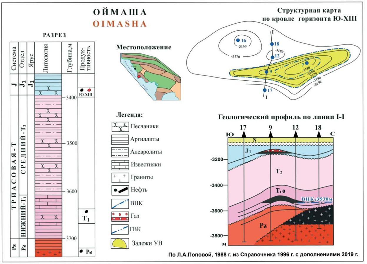 Продуктивность месторождения связана с породами палеозойского, триасового и юрского возраста. Оймашинское месторождение получило широкую известность благодаря получению притоков нефти из выветрелого гранитного массива с пористостью до 5,2%.