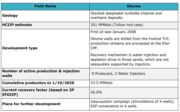 Data source:Competent Person’s Report (CPR) Tullow Oil Equatorial Guinea Assets. TRACS. 2020