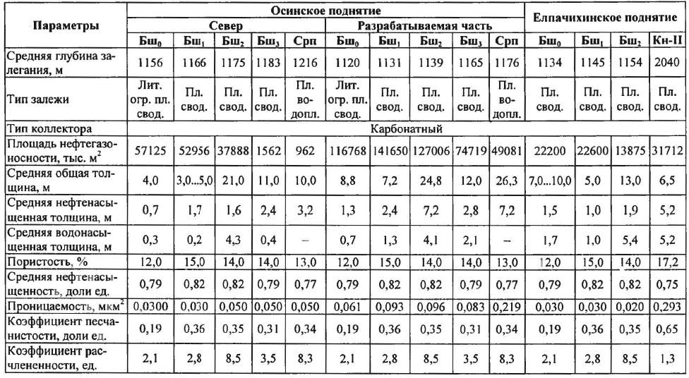 По кровле башкирского яруса Осинская структура представляет собой образование неправильной формы - пересечение двух брахиантиклинальных с кладок: продольной и поперечной относительно простирания бортовой зоны ККСВ. Елпачихинское поднятие является структурным выступом, осложняющим Осинское месторождение.