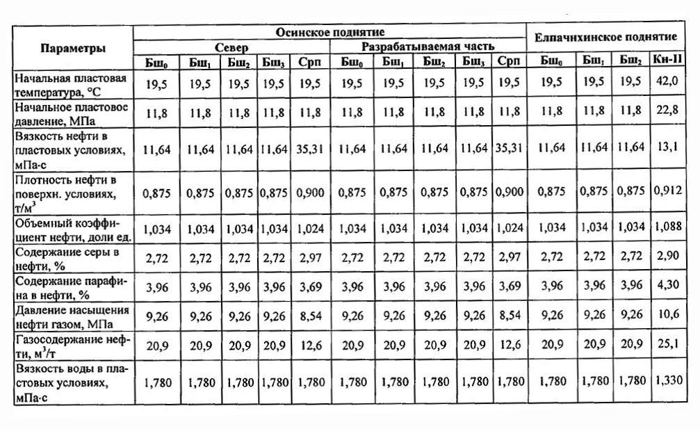Геолого-физические характеристики продуктивных пластов приведены в табл. 1.