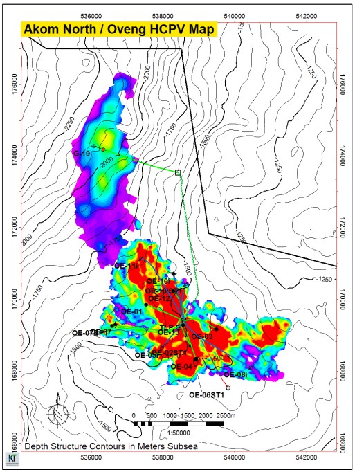 Oveng (/Akom North) HCPV map with well locations
