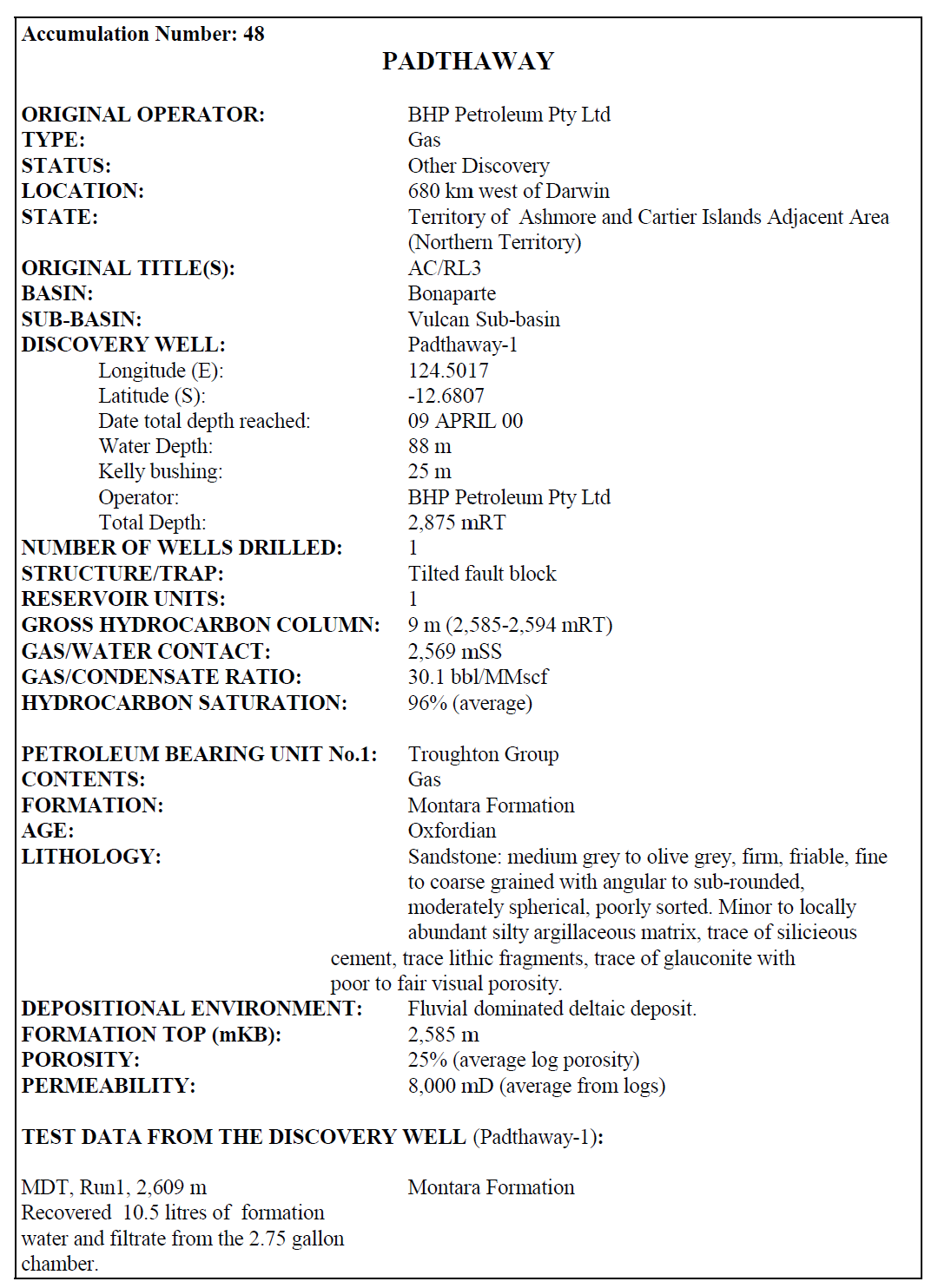 Месторождение: Padthaway 1 (ID: 56758)