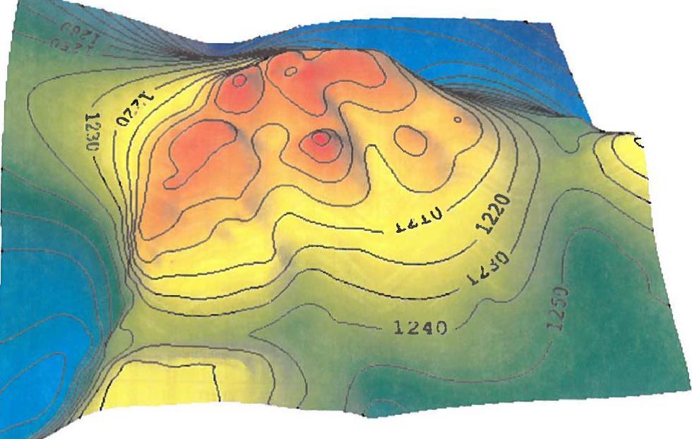 Рис.2. Структурная карта по кровле продуктивного пласта Тл2 Полазненского месторождения