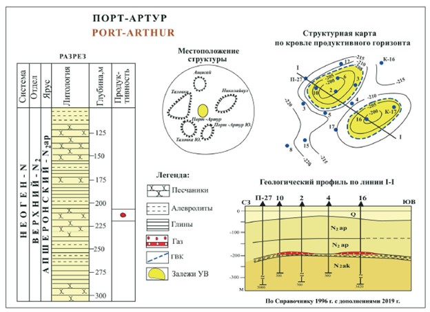 Газовое месторождение Порт-Артур расположено на правобережье реки Урал и занимает самую западную позицию в группе месторождений Центрально-Прикаспийской НГО. В структурном отношении месторождение приурочено к межкупольному поднятию, образованному между куполами Ащисай - Таловка - Николайаул - Порт-Артур Южный. На поднятии выделяются две малоамплитудные вершины, на которых в отложениях апшеронского яруса выявлены газовые залежи.