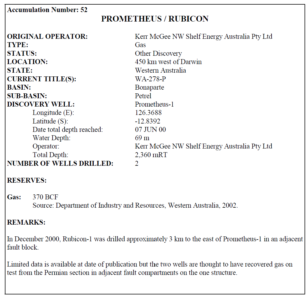 Data source: Cadman, S.J. and Temple, P.R., 2004. Bonaparte Basin, NT, WA, AC & JPDA, Australian Petroleum Accumulations Report 5, 2nd Edition, Geoscience Australia, Canberra.