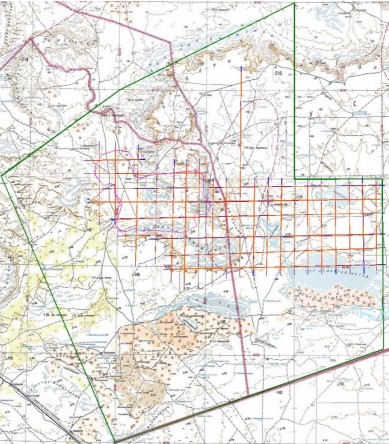 Рисунок 1. - Сейсмопрофиля 2Д в пределах геологического отвода АО «КазАзот», включая площадь Шагырлы-Шомышты