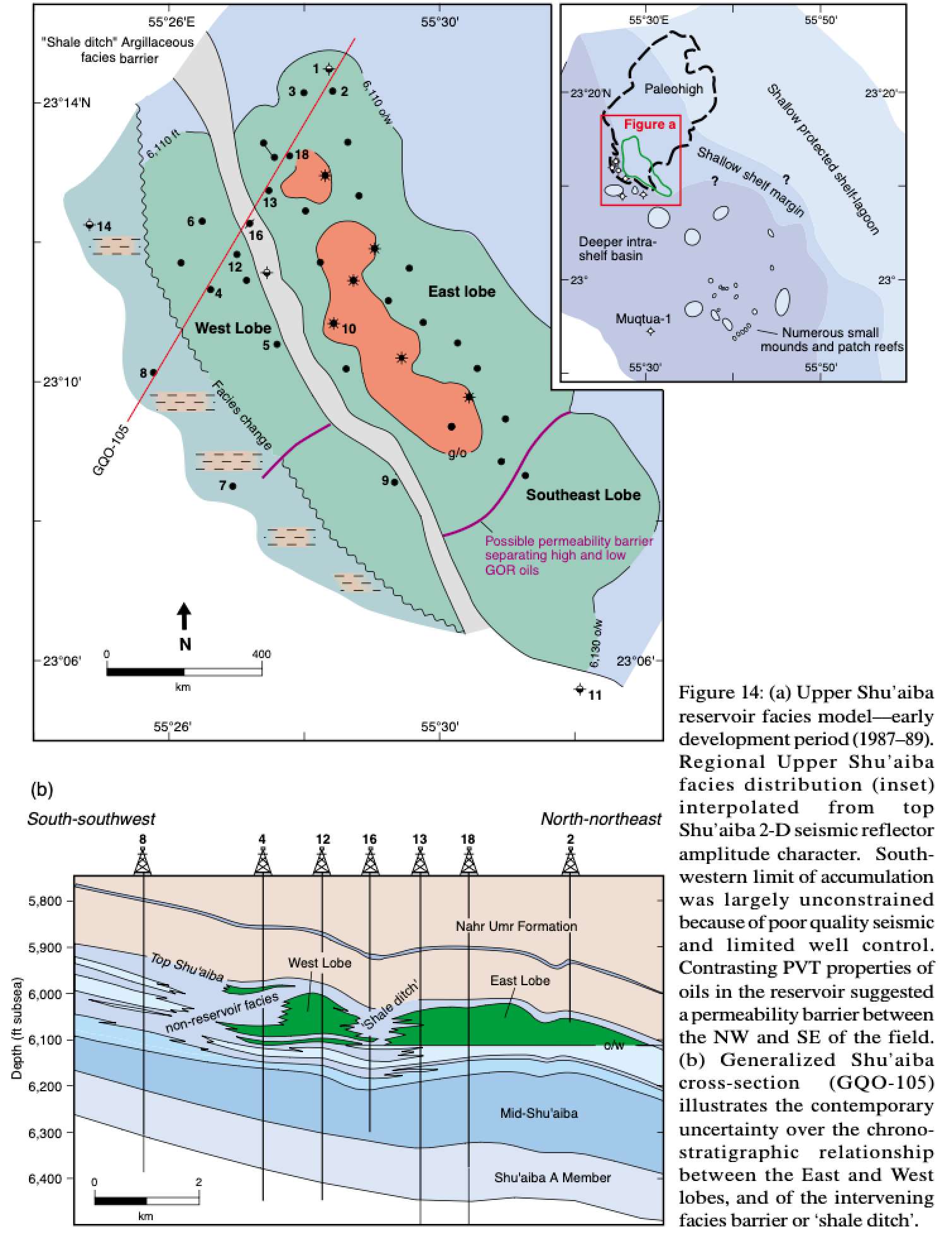 - Тип барьеров: Включают непрерывные барьеры, представляющие более глубоководные фации агрегирующей высокочастотной последовательности East Lobe; плотные цементированные завалы на вершинах погружающихся высокочастотных последовательностных циклов.