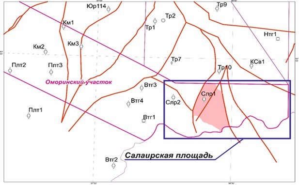 Рис.1. Схема расположения Салаирской площади в пределах Оморинского ЛУ