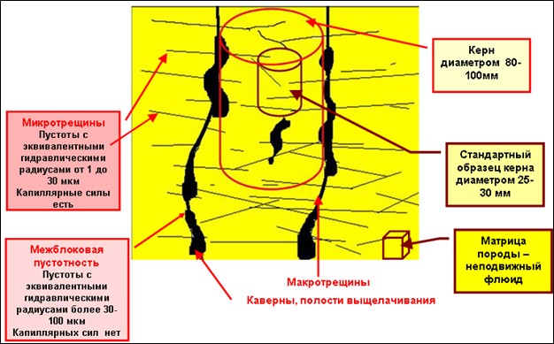 Принципиальное строение каверно-трещинного коллектора в рифейских отложениях приведено на рисунке (Рис.3.).