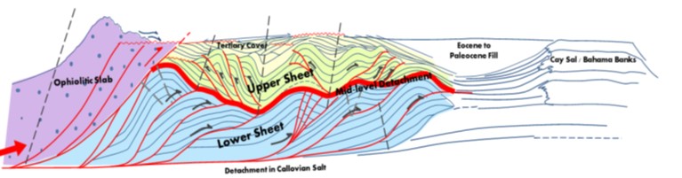 Figure 4. - General Structural Model for Block 9 Exploration - Mapping the mid level detachment describes leads in the the lower sheet play