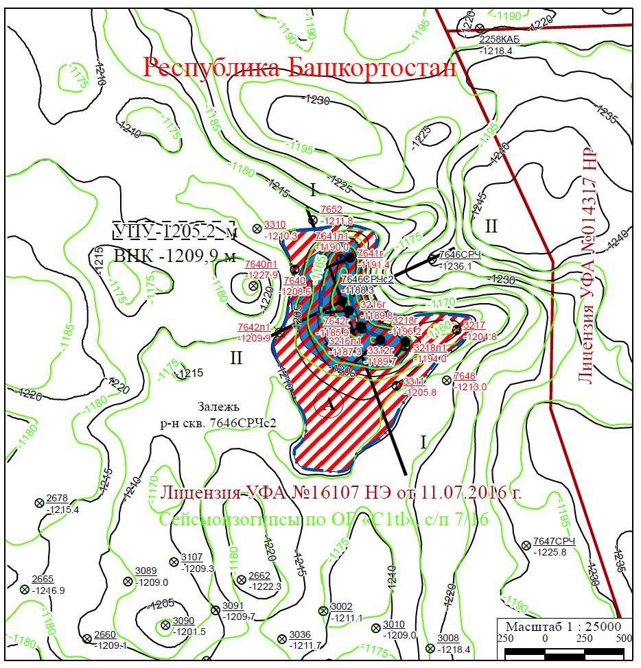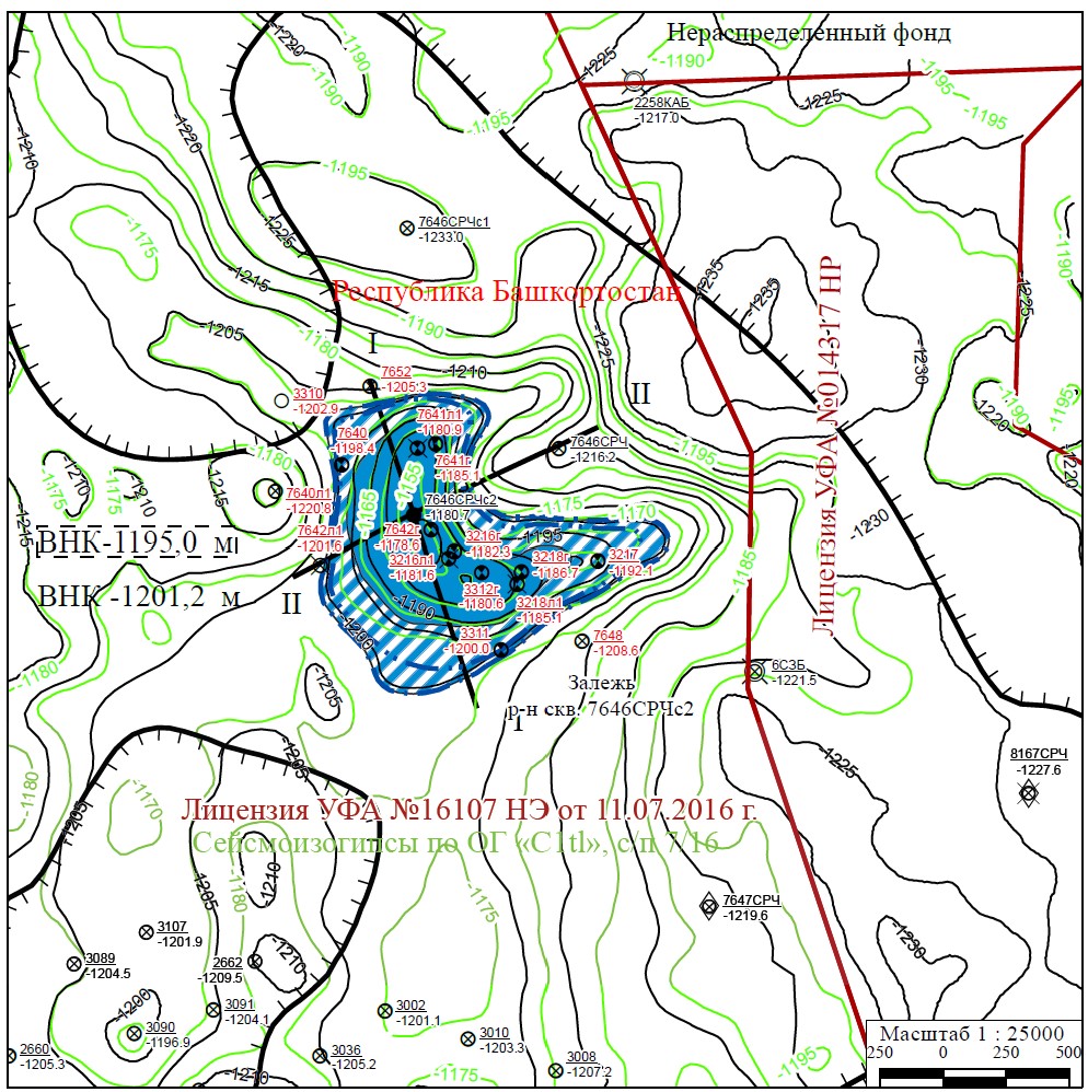 По данным бурения и эксплуатации скважин скорректированы структурная карта и карта нефтенасыщенных толщин залежи. Структурные перестроения выполнены в соответствии с данными сейсморазведочных работ МОГТ-3D с привязкой к ОГ «C1tl».