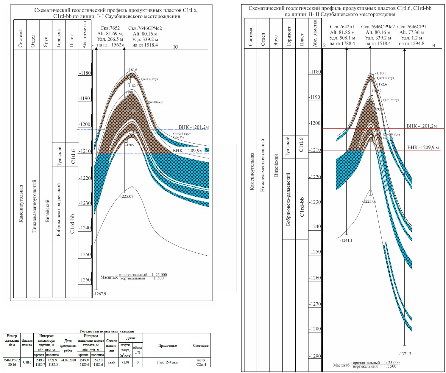 Изменения представлены по залежам района скв.7646СРЧс2 пластов С1tl.6, С1rd-bb.