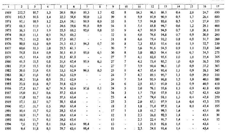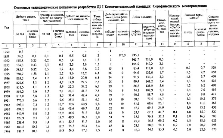 В промышленную разработку залежь ДІ Серафимовского месторождения введена в 1949 г. В табл. 5 приводится динамика разработки пласта ДI. Фондовая карта по состоянию на 01.01.95 представлена на рис. 3.