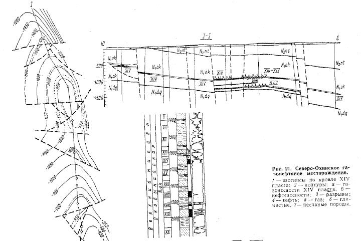 Северо-Охииское газонефтяное месторождение (рис. 1) приурочено к небольшой антиклинальной складке, осложняющей северную периклиналь Охинской структуры. Свод, ее сложен глинисто-песчаными осадками нижненутовской подсвиты, под которыми залегают песчано-глинистые отложения окобыкайской свиты мощностью 1100 м.