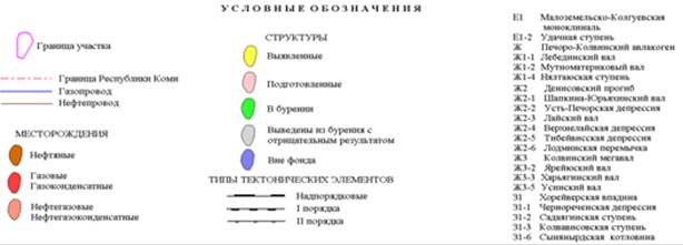 Крупные валоподобные поднятия осложнены структурами более низких порядков, конфигурация которых по различным маркирующим горизонтам осадочного чехла может не совпадать.