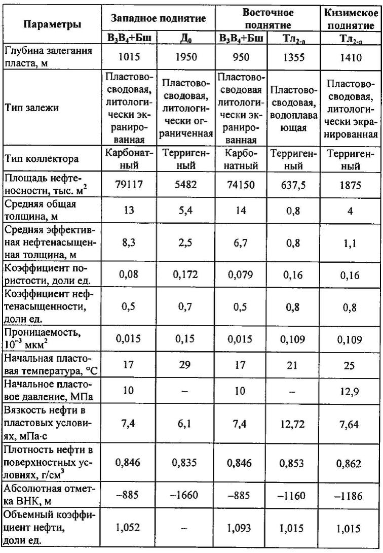 Таблица 1. Геолого-физические характеристики продуктивных пластов Северокамского месторождения