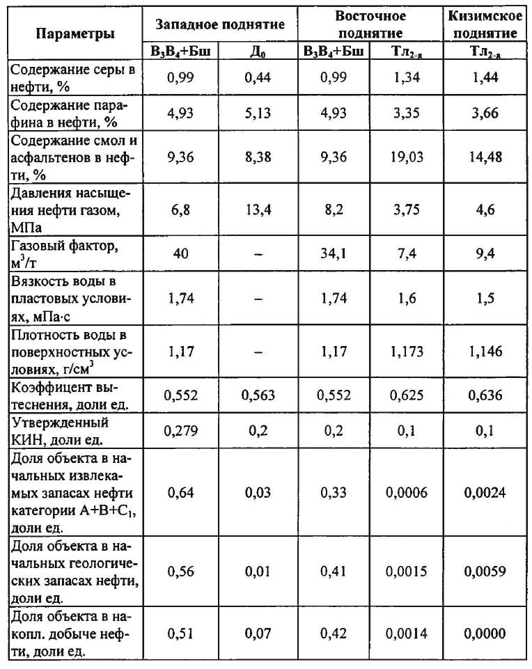 Залежи нефти на Западном поднятии приурочены к пластам Д0, В3В4 и Бш, на Восточном поднятии к пластам Тл2-а, В3В4 и Бш, на Кизимском поднятии - к пласту Тл2-а.