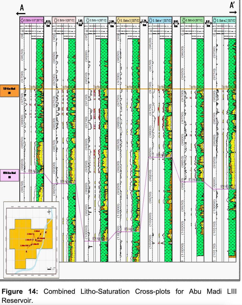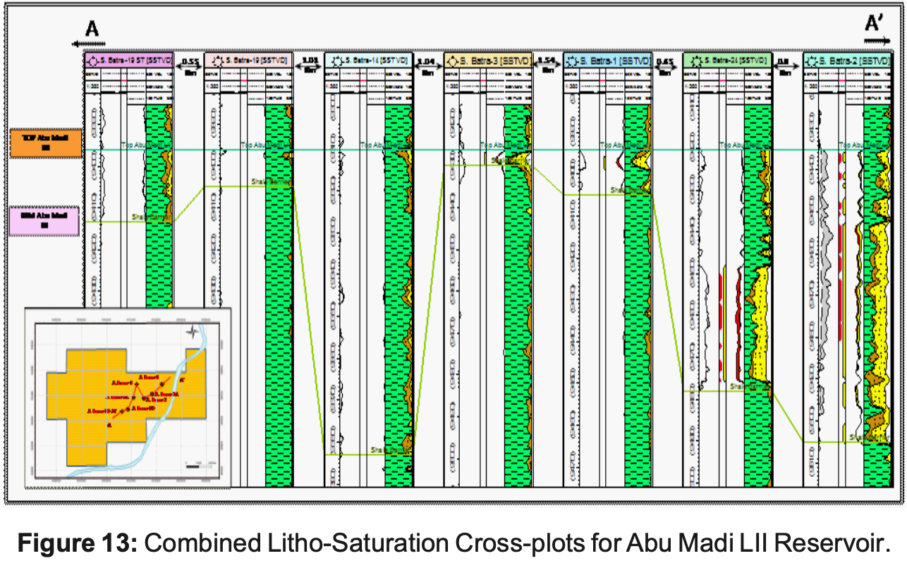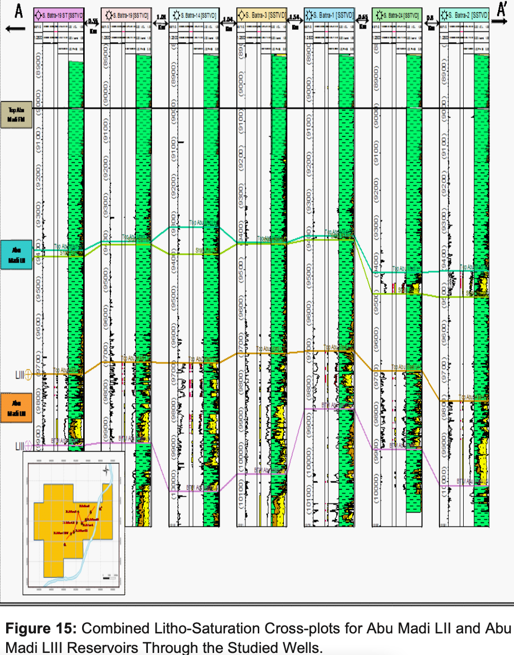The Abu Madi Formation (Miocene section) is composed of Sandstones and Shale. The environmental conditions for the reservoir levels of Abu Madi Formation (Abu Madi Level II and Abu Madi Level III) are arranged in a transgressive vertical stacking pattern with a landward backstepping of the fluvial-coastal depositional systems and an overall shaling out to the north.
