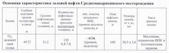 Источник: Материалы к оперативному изменению запасов УВС пласта Оз Среднемакарихинского месторождения (на 01.01.2015 года). Лицензия СЫК 01750 НЭ. Гудков А.С., Перечицкий П.В., Колбунов М.Г., и др. 2015